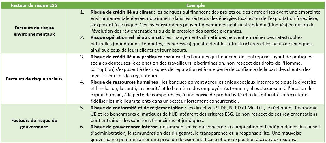 Le point sur les facteurs de risque ESG dans le secteur bancaire